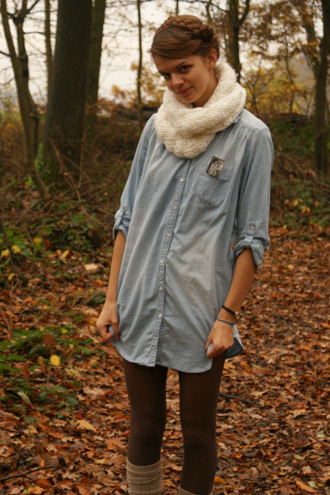 Janina: Schal, Jeanshemd & Mantel: H&M; Strümpfe: 3 Suisses; Schuhe: ebay