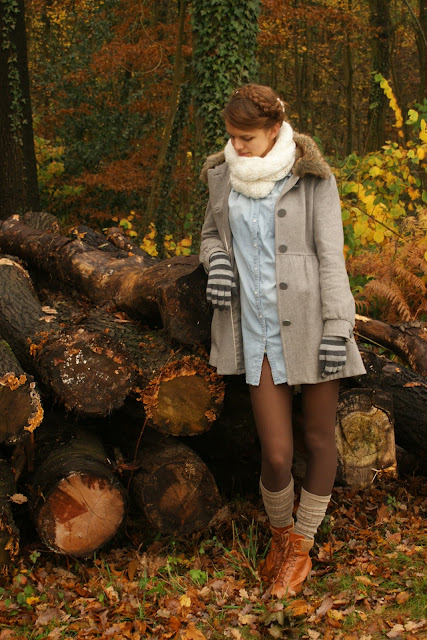 ich finde das outfit mit dem grauen Mantel toll! gerade der Mantel gefällt mir gut und auch das jeanskleidchen sieht süss aus =)