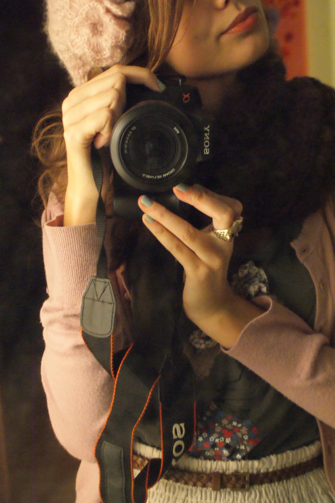 Mütze/Cardigan/T-Shirt & Tasche: Primark , Rock/Gürtel/Schal: H&M ; Strumpfhose: von meiner Schwester; Stiefel: Tamaris